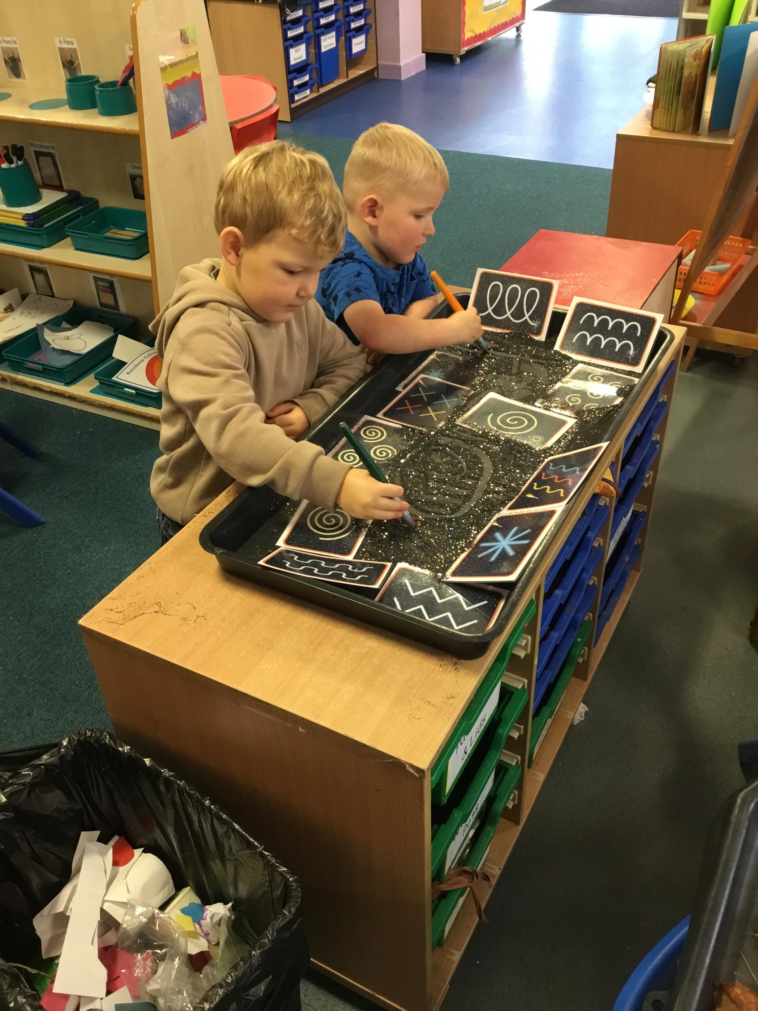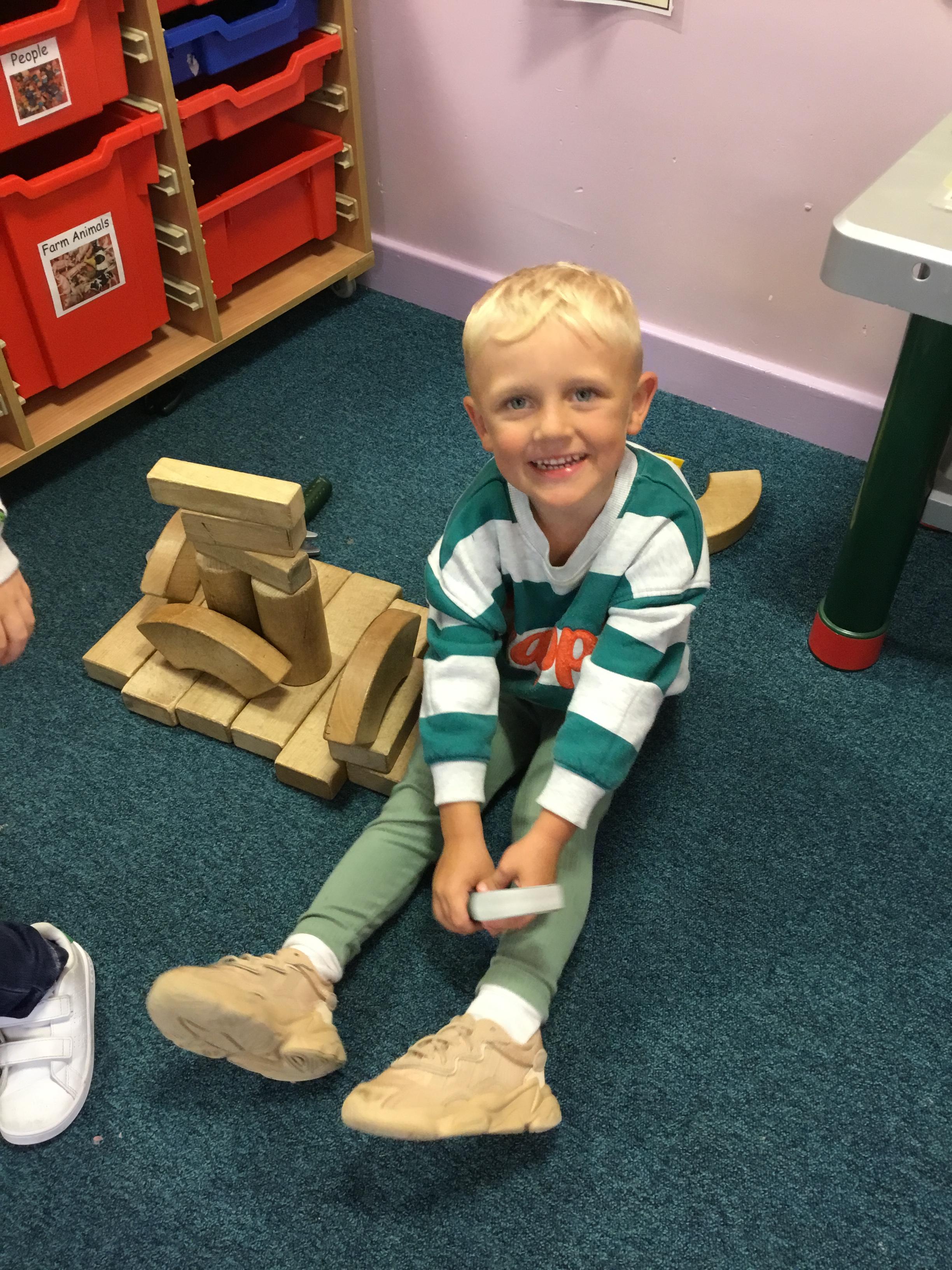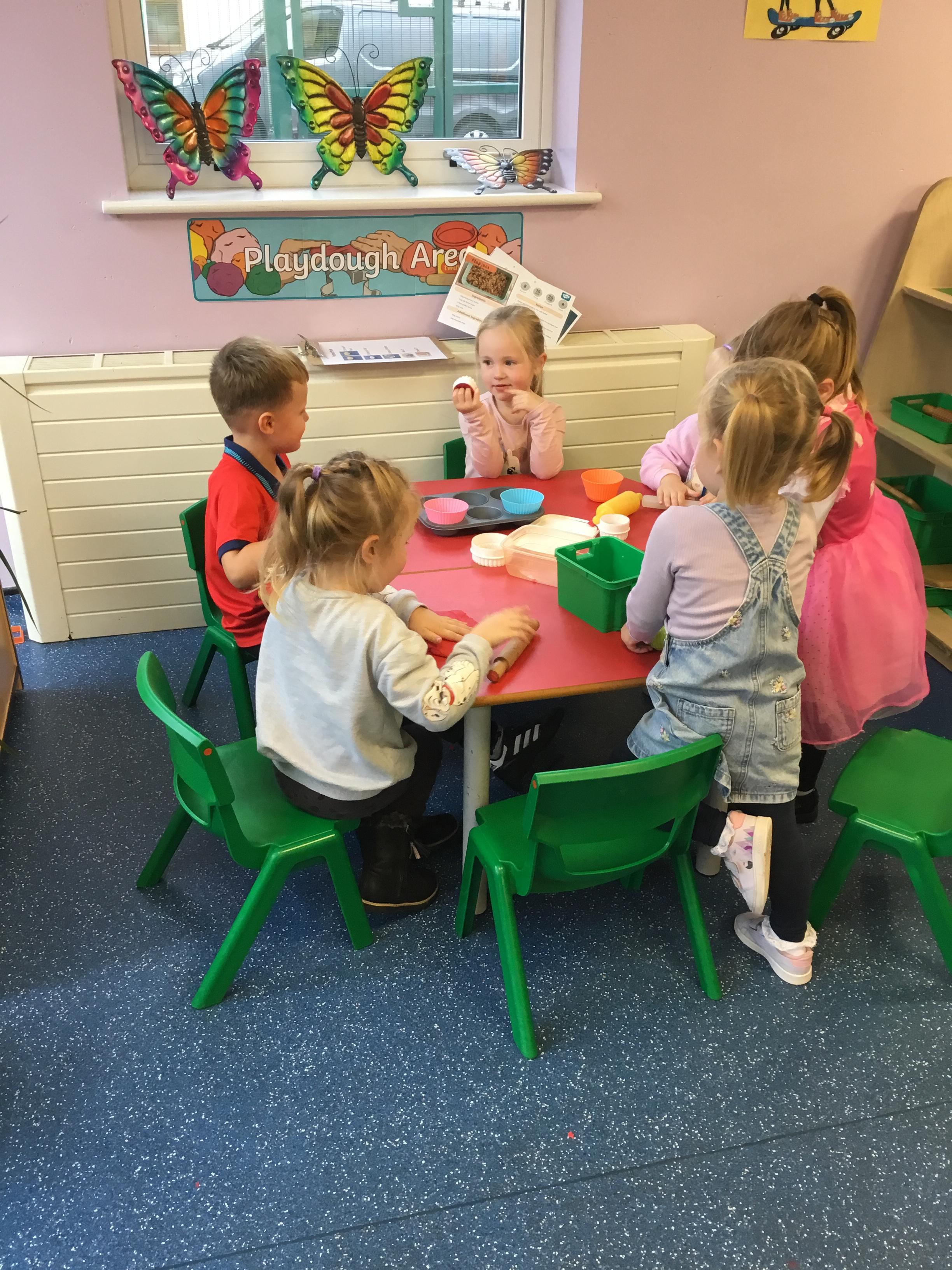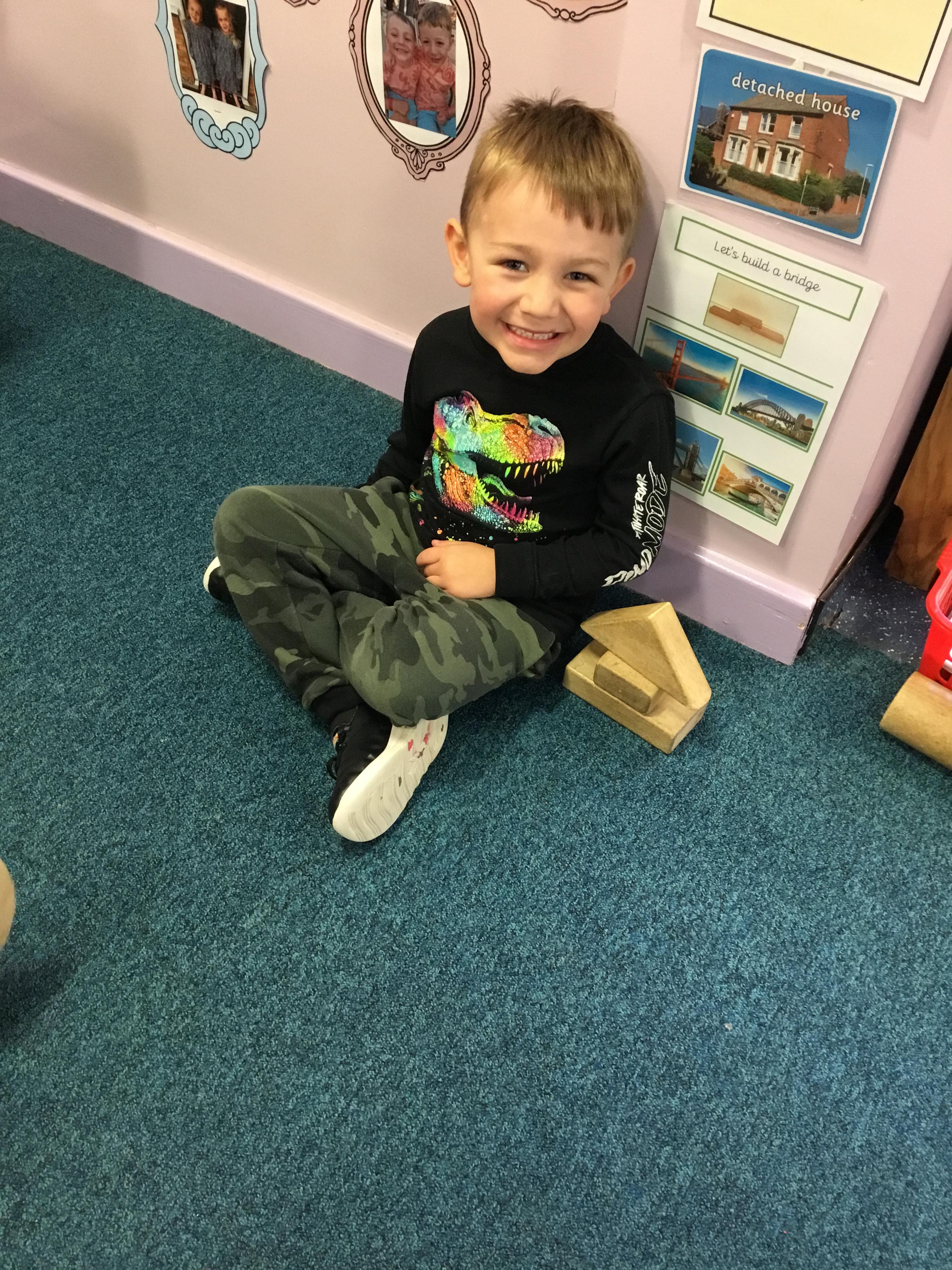The Children are continuing to learn through play and express themselves during our choosing times. They love to use the playdoh to bake, make models, birthday cakes, monsters and even the odd T-Rex. They love to engage in the painting area to make their own masterpieces, some for the classroom walls and some to share with their grown ups at home. Then we have boys in the maths area using different blocks to build their own castles, all the while discussing their colour and shape collection. Then in the small world, we have had a train track to take us all to the beach for an ice cream. We love imaginative play where the children can create their own narratives and explore their use of language.