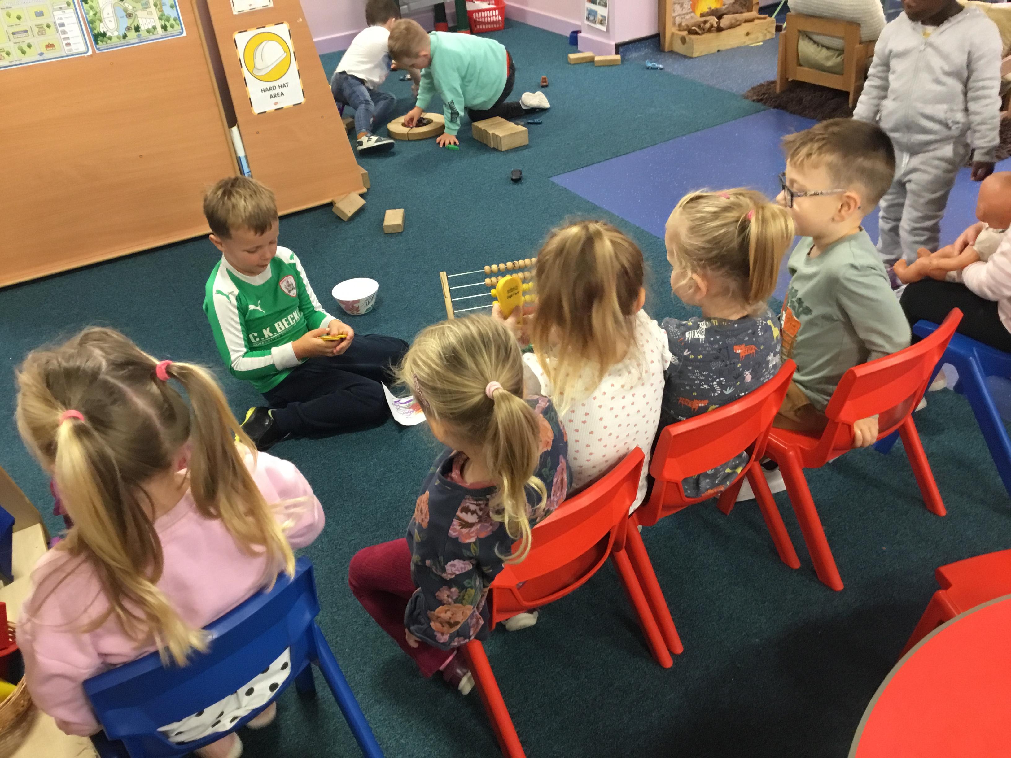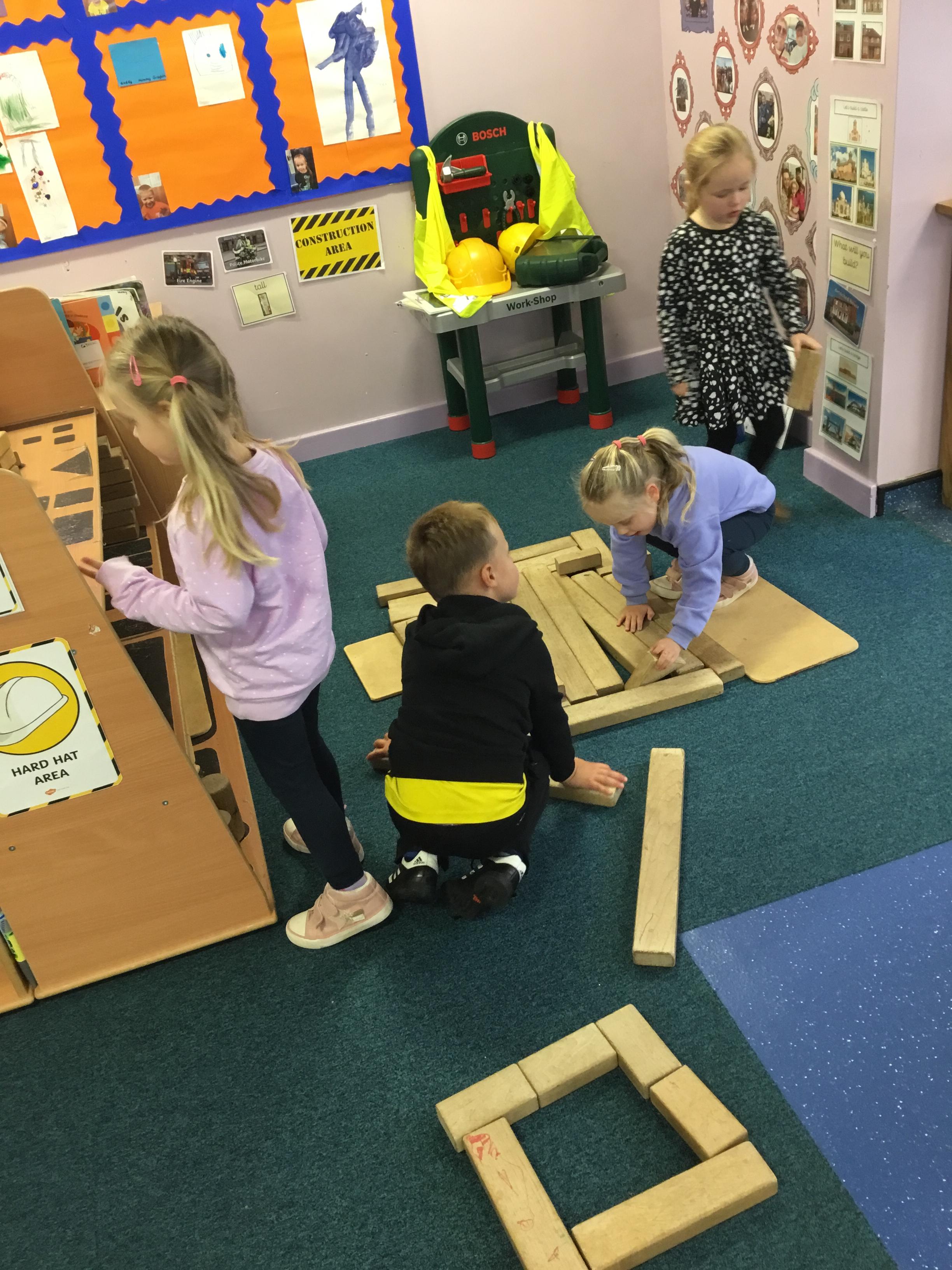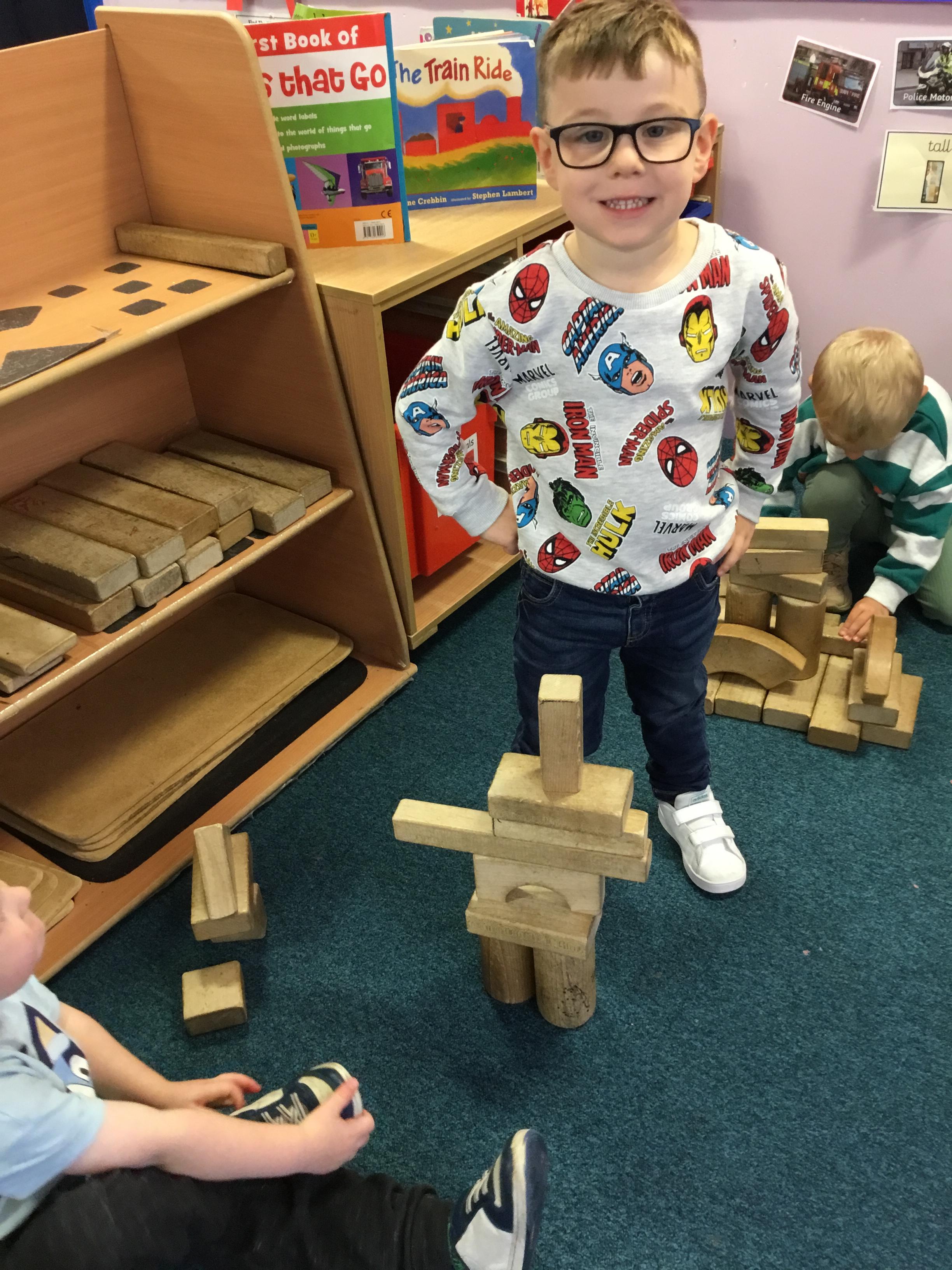 In provision this week, we have had budding architects building houses, railway engineers, tea parties in the play dough, imaginative play in the home corner, and our very own class within a class in the maths area, the children all took turns to be the nursery adults, Miss Merrick, Mrs Benoit and Mrs Sykes think that the children all do excellent impressions of us all and cannot wait till the next half terms installments!