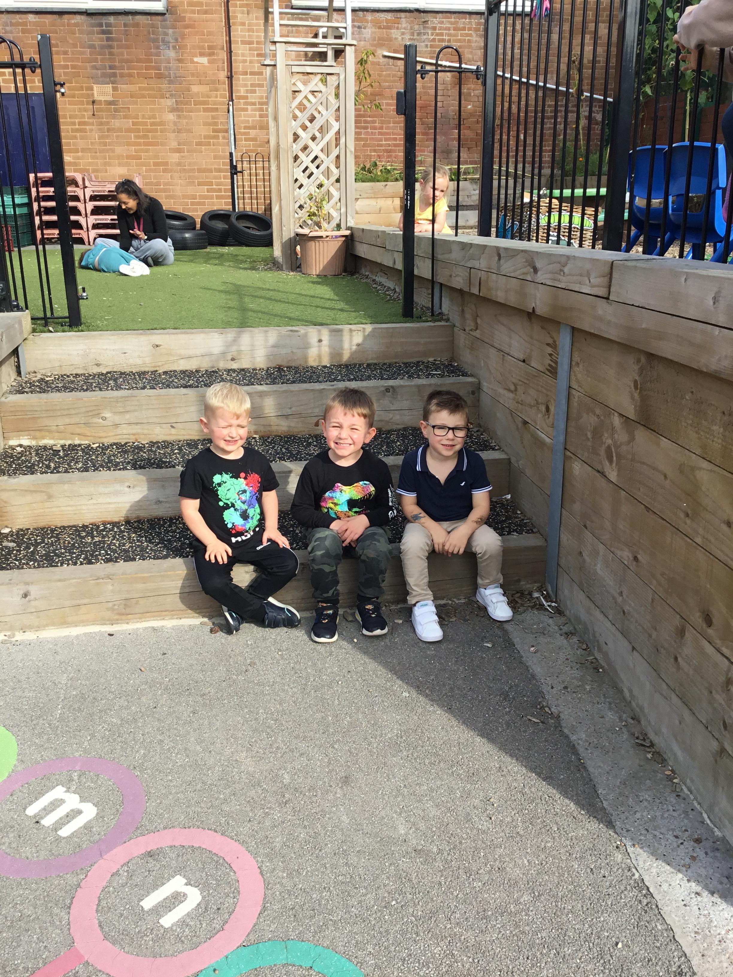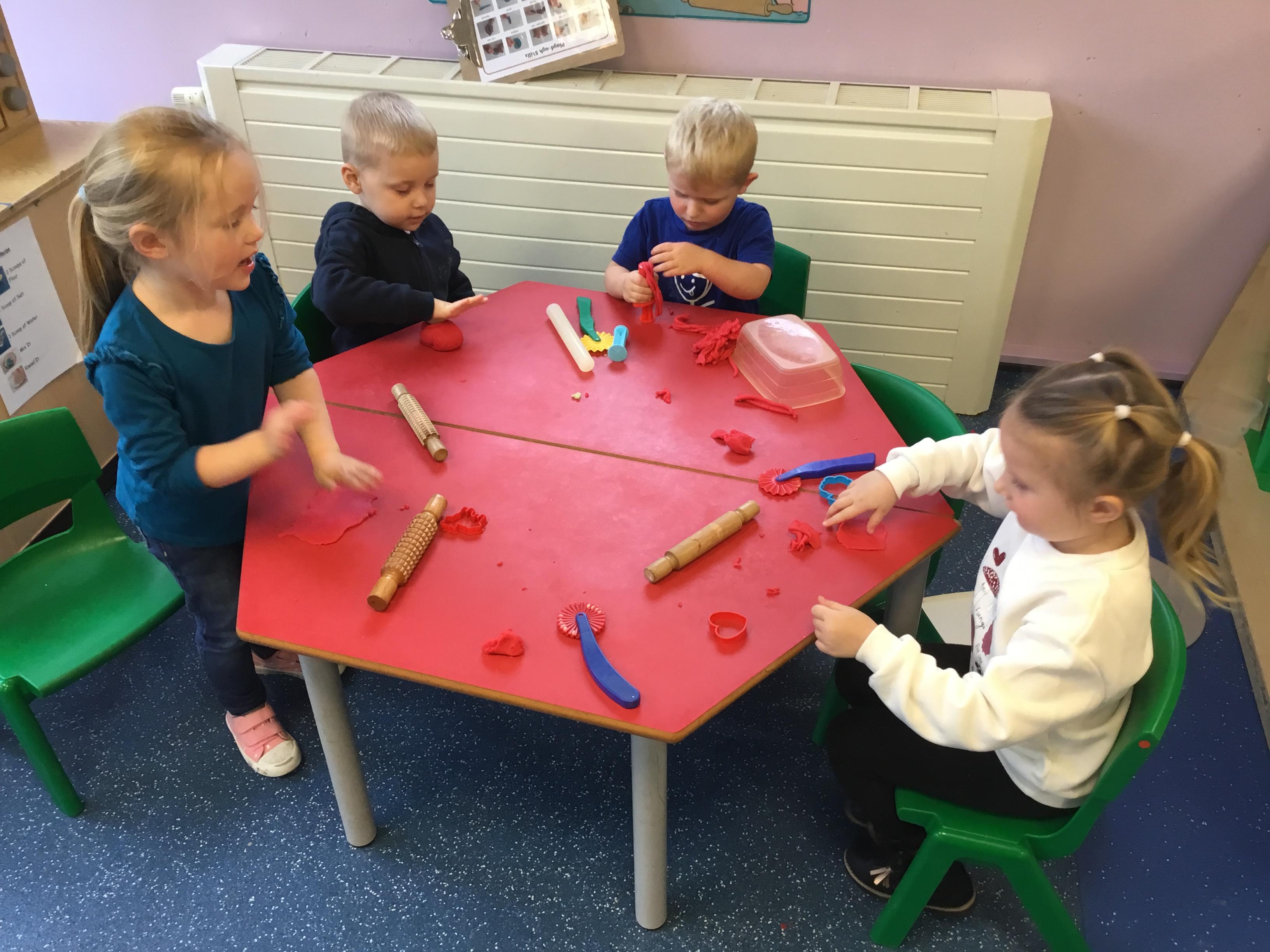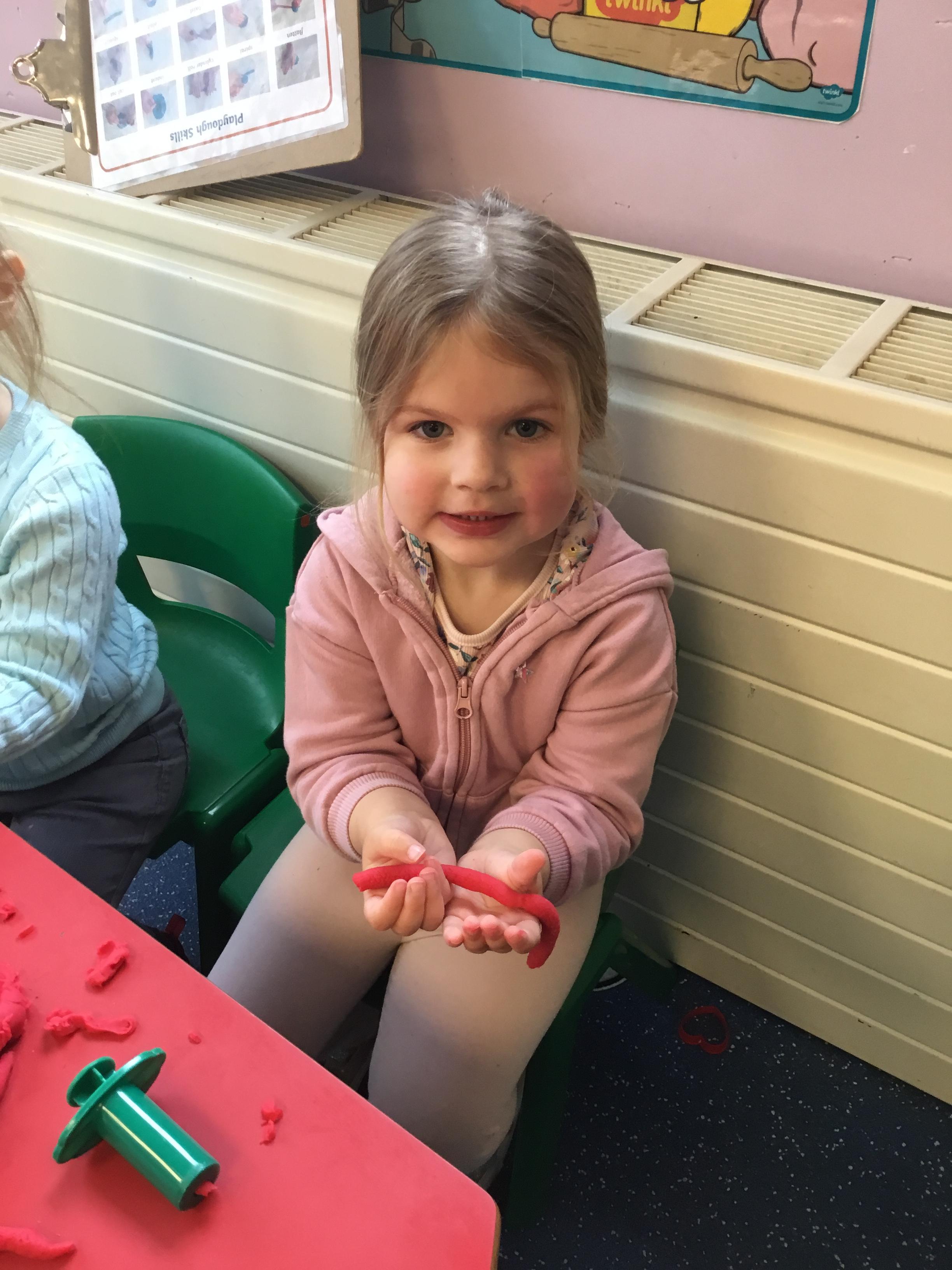 We are all having lots of fun learning both inside and outside and the children have all had time to access lots of different areas and experiences, from watering our beautiful garden, to digging in a gravel pit, then making works of art in our painting area, and making their own playdoh.