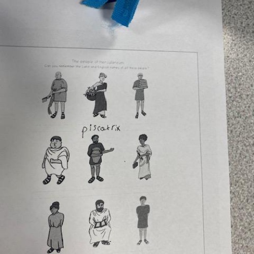 The Language Club attendees voted on which languages they would like to experience. Latin was one of them. Today, we started our Latin experience by looking at the ancient town of Herculaneum, which was covered by a mudslide following the aftermath of the eruption of Mount Versuvius. We looked at what the main street would have looked like and learnt the names/ trades of the people who we would have met there.