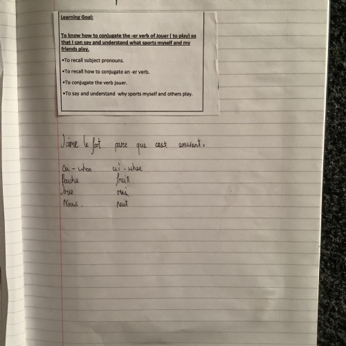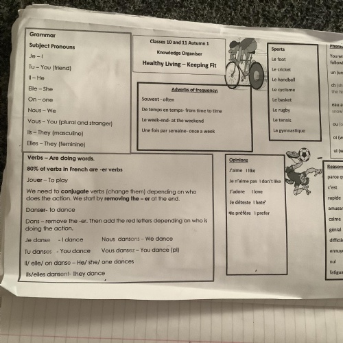 Also, at KS3 and KS4 it is essential that students can conjugate -er verbs, they can recognise and use the four key irregular verbs, including faire. This is important, as students will go on to expand their verb conjugation knowledge to -re, -ir, reflexive and other irregular verbs before they move on to using these verbs in different time frames and tenses.