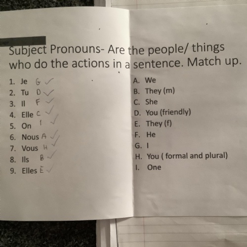 Grammar- Students should be able to identify the pronouns Je (i) and Tu (you).
