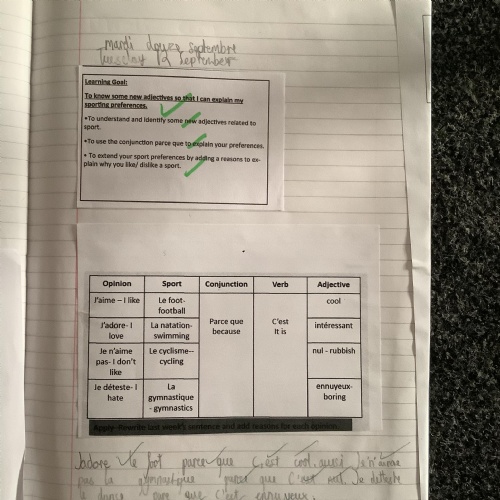Look at some of our French learning in KS2, children have worked really hard to learn, practise and revise new vocabulary when using the different skills needed to learn a language!