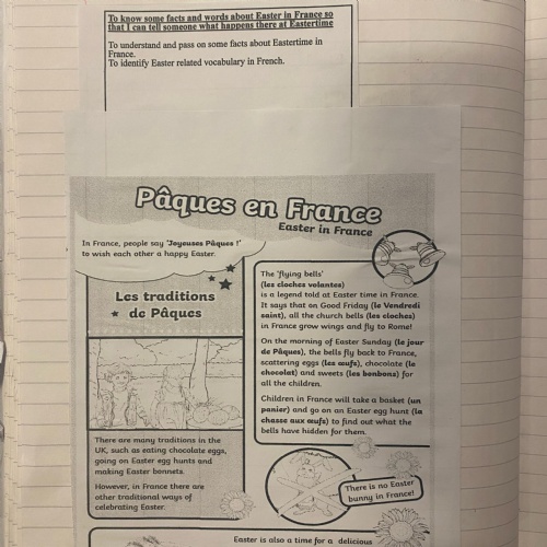 Cultural Capital- differentiated learning to find out about and explore how people in France celebrate Easter- Pâques!